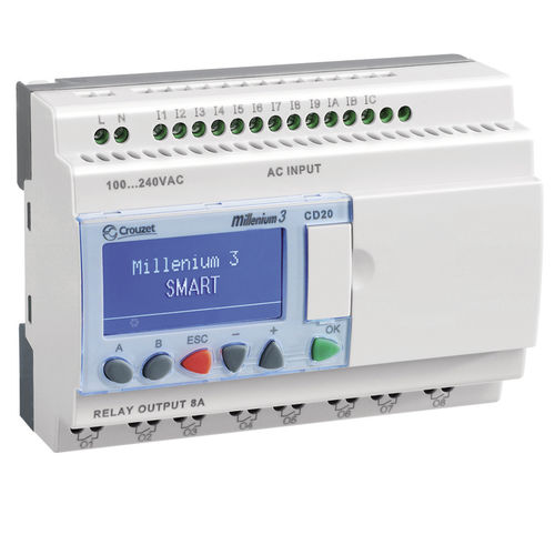 9、高諾斯Crouzet微型PLC(萬控器)標準為8 IN/4 OUT和12 IN/8 OUT,可進行I/O口的擴展,帶數字和模擬量輸入,繼電器/晶體管輸出可選.采用220vac/24vac/24vdc/12vdc電源供電.可進行遠程通訊Modbus RS485,基于WINDOWS介面采用功能塊編程CLS.而且編程簡單,方便,易懂.)